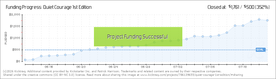 I can't believe we aren't even a week in yet and already halfway to our initial goal. Thank you so much to all my current backers and keep spreading the word about Quiet Courage. I'll be posting some of the sketches from the new illustrations that'll... (Read More)