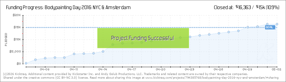 A Big Thank You to all who gave! Bodypainting Day 2016 is ON!! We still have just over one day left on our Kickstarter. Any additional funds will be very useful. It will allow us to buy more risers to accommodate bigger crowds and pay for more... (Read More)