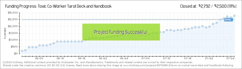 Hi all, Thank you so much for backing my tarot deck. Based on your feedback, I have updated the project video and jpegs to reflect the design without the hole at the top. I also removed the watermark so the cards are easier to view. Check it... (Read More)
