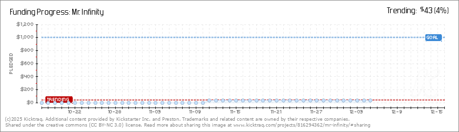 Help your backers reach your daily goals and help others see how you're doing. It's easy, with Kicktraq Mini.Here are a few quick snippits of code you can use to embed your personalized widget on your website, in your blog, and even on your favorite forum.