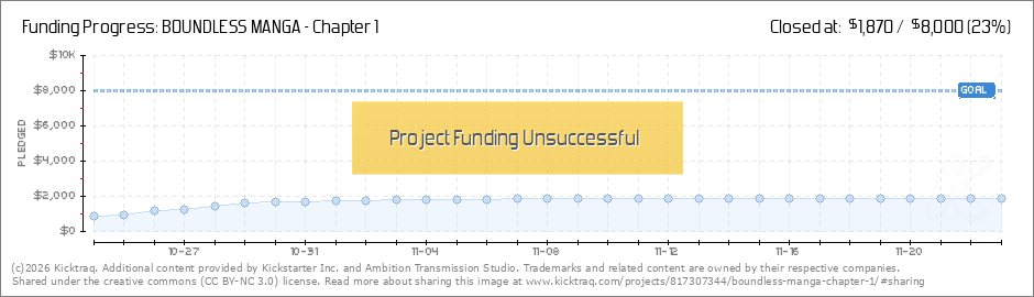 hey everyone. it's Nexik the creator of Boundless Manga. two days into launch and we only got 12 backers and $988. almost 3000 follows on instagram and other social media, thousands of email addresses, and ads. for almost nothing. We're doing... (Read More)