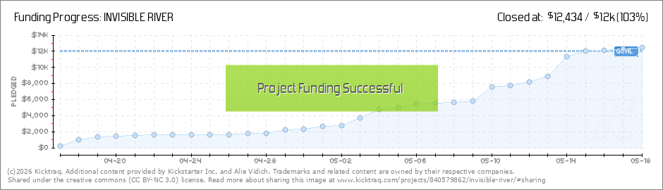 We only have 7 days left to raise $6.1K for INVISIBLE RIVER - let's make it happen by Sat 5/18 at 9:30am!!