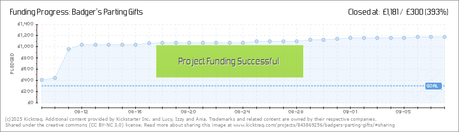 Help your backers reach your daily goals and help others see how you're doing. It's easy, with Kicktraq Mini.Here are a few quick snippits of code you can use to embed your personalized widget on your website, in your blog, and even on your favorite forum.