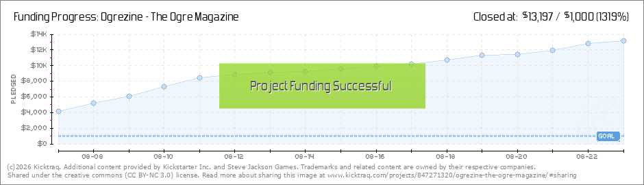 We’ve reached our second stretch goal - $3,500 in support. That means the Ogrezine will include nine articles. The writers’ guidelines will be out soon . . . not that they are complex at all - and Drew is hoping to see a lot of submissions.... (Read More)