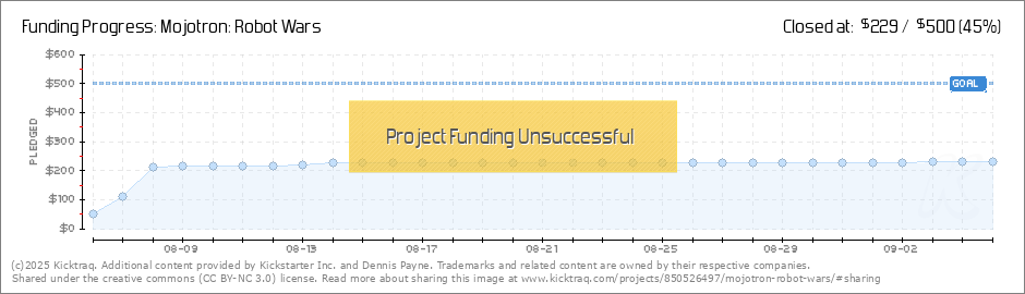 Help your backers reach your daily goals and help others see how you're doing. It's easy, with Kicktraq Mini.Here are a few quick snippits of code you can use to embed your personalized widget on your website, in your blog, and even on your favorite forum.