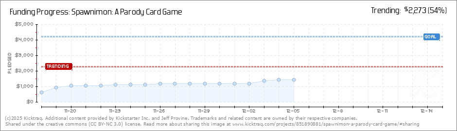 Help your backers reach your daily goals and help others see how you're doing. It's easy, with Kicktraq Mini.Here are a few quick snippits of code you can use to embed your personalized widget on your website, in your blog, and even on your favorite forum.
