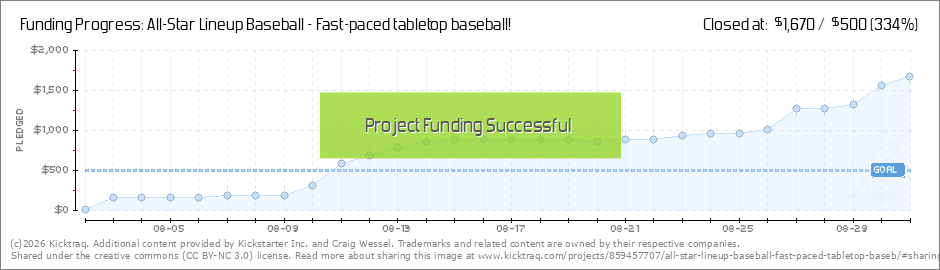 Thanks to you, All-Star Lineup Baseball has exceeded it's Kickstarter funding goal! We are GO people!Right now, the game is basically done, but I'm checking out some other sourcing options. Defintely will be ready to ship once Kickstarter releases... (Read More)