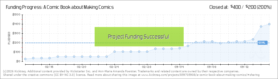 I was getting a little worried coming so close to the wire. Anyway, the project has been successfully funded and now costs are one less thing on my mind. I'm working on the next set of pages as we speak and I'll be sure to keep everyone updated on... (Read More)