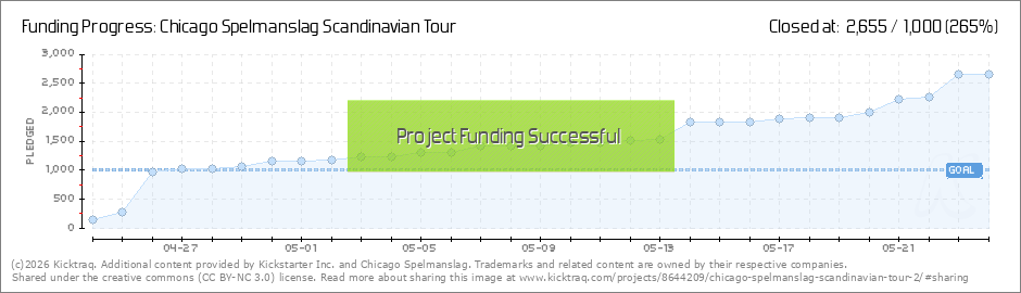 Wow! Chicago Spelmanslag is profoundly moved by the tremendous show of support that we have seen in only the first few days of our Kickstarter Project. Thank you! We have met our minimum goal of $1000 which, with all of our group savings from past... (Read More)
