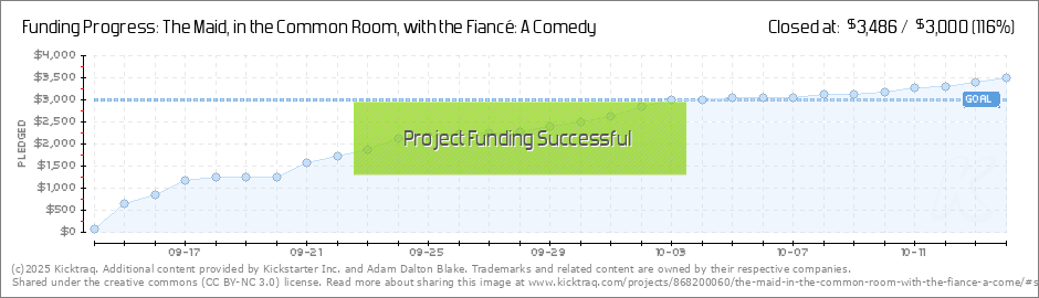 Hello Maidens!We are officially 80% raised with two weeks left in our campaign. We only need to raise $600 in order to receive the funding for "The Maid, in the Common Room, with the Fiancé"! I am overwhelmed with how supportive everyone has been in... (Read More)
