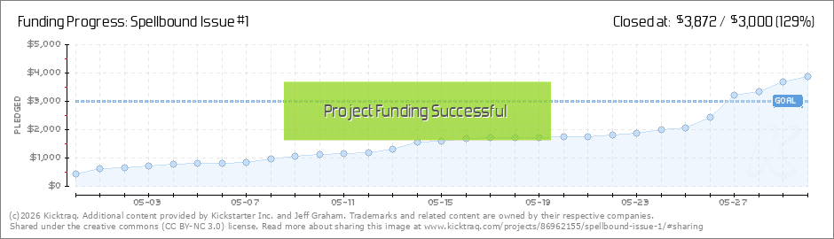 And just like that, the Spellbound Kickstarter Campaign has been deemed a success by surpassing the initial campaign goal!! As of a few minutes ago, we have surpassed our asking goal of $3000 and are moving forward from there with just 2 days to... (Read More)