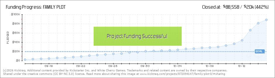 A lot going on in the old graveyard! We've marked off more SOCIAL STRETCH GOALS, which is AWESOME! We also added a couple of new ones, crossing over to that HORRIBLE game, Endangered Orphans Of Condyle Cove! But don't worry about them. Nobody likes... (Read More)