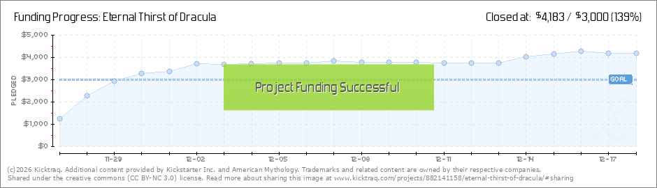 That's right, everyone... Thanks to your generous contributions, our campaign for ETERNAL THIRST OF DRACULA has reached its goal in a little over 48 hours! Now that we've cleared the hurdle of reaching our goal, you know what's coming next,... (Read More)