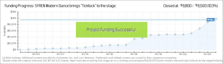 Hi Backers! Here's a recent clip of SYREN working through some parts of Ticktock at The Ailey Studios in NYC. There are many parts of the dance that we simply have to review over and over again & even then we still don't get it right!... (Read More)