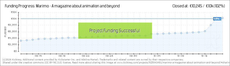 Dear backers, Thank you for your support, we are almost reaching half our goal! YAY!We still have 19 days to make Marimo issue two happen. The Marimo'z (new name for Team Marimo members) are working hard to bring you the best bites of animation.So... (Read More)