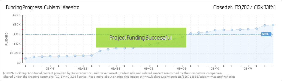 Wow! I can hardly believe it! We are FUNDED!A massive, heartfelt thank you to all of my backers. I appreciate your faith in me and your faith in the product. I am absolutely delighted that together we've made this happen and now, 'Cubism : Maestro'... (Read More)