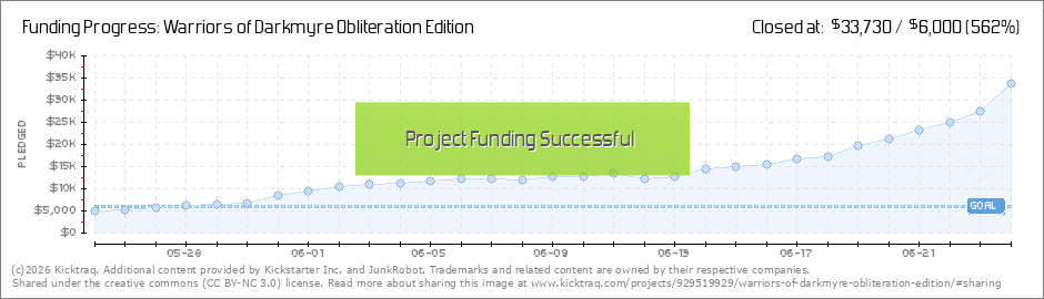 http://www.kicktraq.com/projects/929519929/warriors-of-darkmyre-obliteration-edition/Not EVERYONE reads the comments section so I am updating you all on it. Let's break Warriors into the top 10 on Kicktraq, click on the link, click the blue "share"... (Read More)