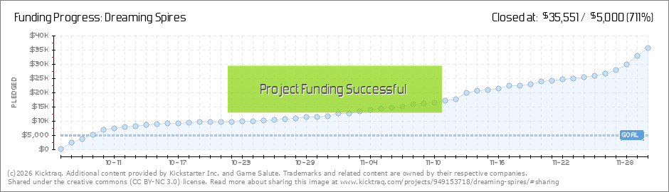 That was quick! We've been speeding up this week, you can see below, Wednesday was fantastic! Thank you all very much, new backers, for joining us in making Dreaming Spires a reality and old backers, for doing a great job of spreading the word.... (Read More)