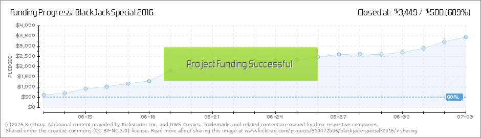 We just broke $1500 and unlocked the 3rd Stretch Goal. Anyone who donated $20 or more to the Kickstarter will also receive a copy of BlackJack Special 24-Page Coloring Book. 24 pages plus a cover for you to color our characters as you want. (Read More)