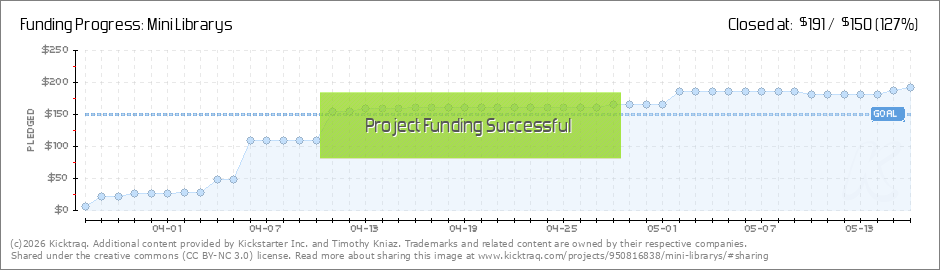 Help your backers reach your daily goals and help others see how you're doing. It's easy, with Kicktraq Mini.Here are a few quick snippits of code you can use to embed your personalized widget on your website, in your blog, and even on your favorite forum.