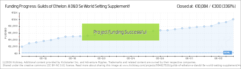 Hello everyone! Officially Funded!Another great campaign, thanks to all of you, comes to an end. The campaign concluded with us managing to unlock 6 cults, so you can expect these in the book alongside the 20 unique Guilds. After the PDF delivery, we... (Read More)