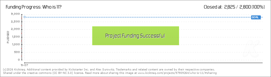 We're about halfway through the process of raising money for "11," and so far we have 9 wonderful backers who believe in this project. Hopefully, they won't be the last.There have also been updates made to the script. Additions to the story, changes... (Read More)