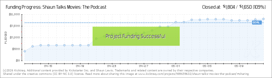The Kickstarter has ended, and we reached our goal (and then some)! Thank you all for helping me keep the Shaun Talks Movies podcast alive. You guys are absolutely the best. (Read More)