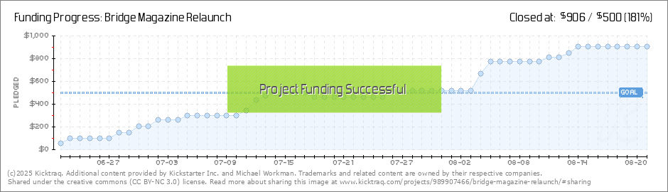 Help your backers reach your daily goals and help others see how you're doing. It's easy, with Kicktraq Mini.Here are a few quick snippits of code you can use to embed your personalized widget on your website, in your blog, and even on your favorite forum.