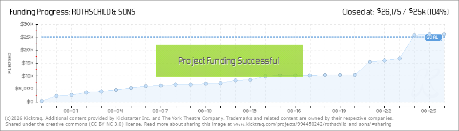 Thanks to everyone who pledged in the first 24 hours of our Kickstarter campaign! We are currently 9% funded with 28 backers. We broke our goal for Day 1 by over $1,000. Mayer Rothschild would be pleased. Over the weekend, we'd like to double the... (Read More)