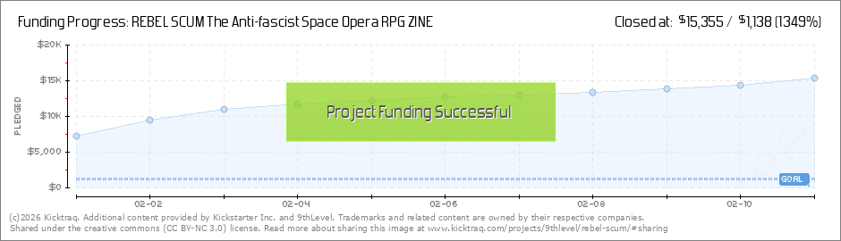 My Comrades and Co-Conspirators, Thank you. Thanks to your AMAZING support, Rebel Scum is has totally exceeded our expectations. Rebel Scum is already at 1000% of the funding and still growing. The campaign continues for one more week - so... (Read More)