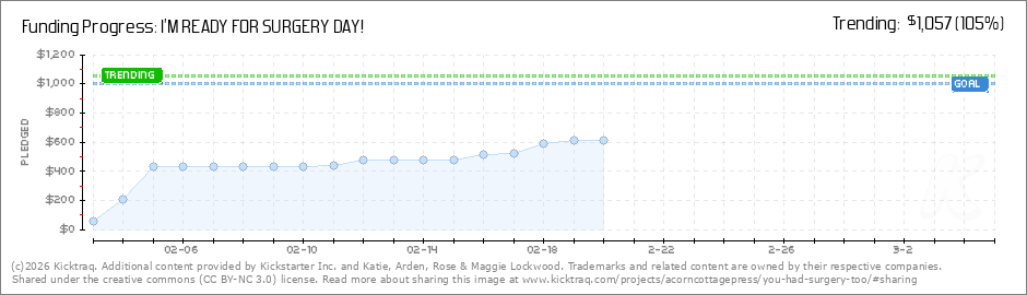 Help your backers reach your daily goals and help others see how you're doing. It's easy, with Kicktraq Mini.Here are a few quick snippits of code you can use to embed your personalized widget on your website, in your blog, and even on your favorite forum.