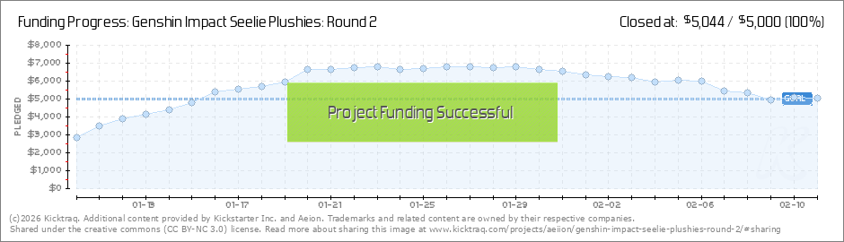 Hello everyone!! The funding goal of $5,000 has been reached today! Thank you so much for all your support with bringing these plushies to life ❤️ Kazuha and Childe will be made, and any further pledges will go to helping unlock more characters... (Read More)