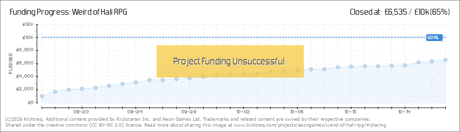 To all our backers, Now with little under 72 hours left on our kickstarter, it is unlikely that we will reach the funding for 'Weird of Hali RPG'. However, if we do not reach the funding goal, watch this space at the beginning of next week as we... (Read More)