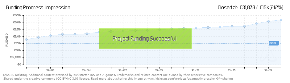 Dear backers, After less then 8 hours we reached our funding goal. Impression is funded! Now, we can unlock all those stretch goals, but before that let's pause for a second and celebrate. We cannot thank enough your great support and advices. You... (Read More)