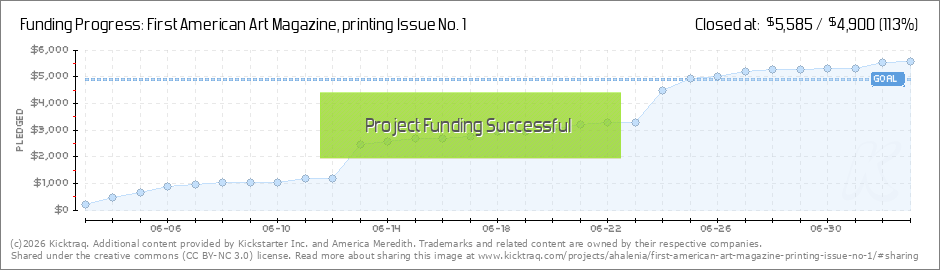 Hello! Thanks everyone for your incredible generous support of First American Art Magazine and our Kickstarter fundraiser to print Issue N°1. YOU make this all possible. The ATALM conference was a great experience and helped reach new audiences for... (Read More)
