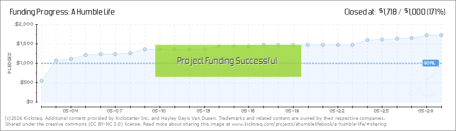 Hi Everyone! I am so thrilled to have reached A Humble Life's Kickstarter goal!! Thank you all for the support...it really means more than I can say. I want to keep you all updated on my plans as people continue to donate! My original plan was to... (Read More)
