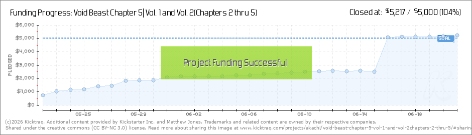 We are currently at 34 backers! Thank you all for jumping on this campaign. We still have a ways to go and sharing is greatly appreciated. From awesome prints to sticker packs. We have something for everyone. In the gripping fifth chapter of Void... (Read More)