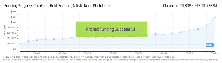 Thank you very much! The first week has been great for fotoEros. The project was funded in 3 hours and continued to grow over the weekend. A Kickstarters tends to slow in the middle week. This is why I like three-week durations. I know this subject... (Read More)