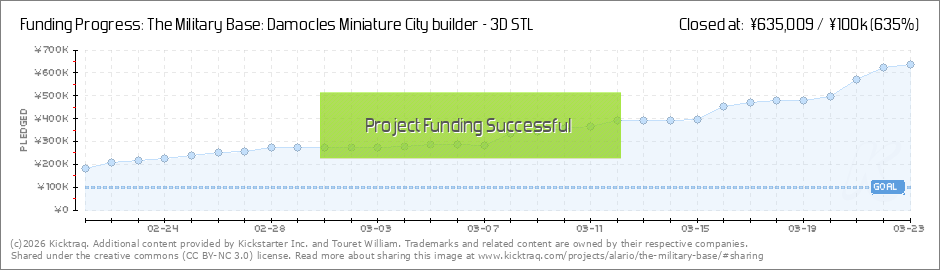 Hi everyone!I am thrilled to announce that our "Military Base" project has reached its funding goal within 3 hours, thanks to the incredible support of our loyal backers. Your immediate and unwavering support for this new venture reassures me greatly... (Read More)