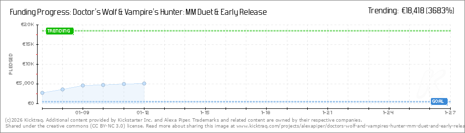 Backers! Wow, you're the best! Thank you so much, everyone! We reached funding in 39 minutes, and YOU made that possible!! Okay, I'm excited for stretch goals. You too? Good. Some romantic character art is the first. Can't wait to get there with you... (Read More)