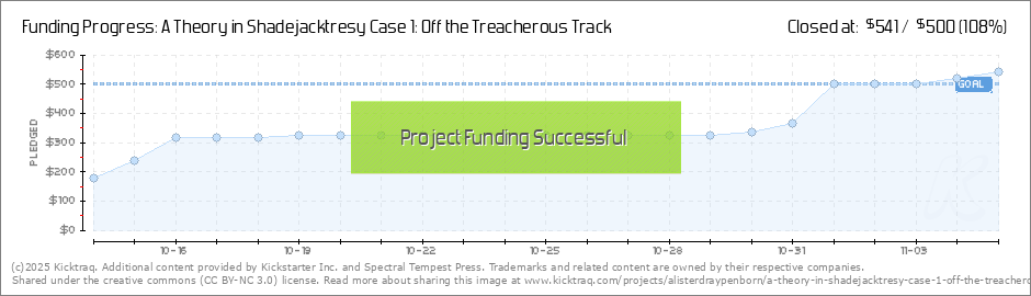 Hello story lovers to an incredible first week for the Off the Treacherous Track campaign. As of this update, we are 65% funded! I cannot thank you, the backers, enough for being a part of this indie publisher's aspiring growth. It is your support... (Read More)