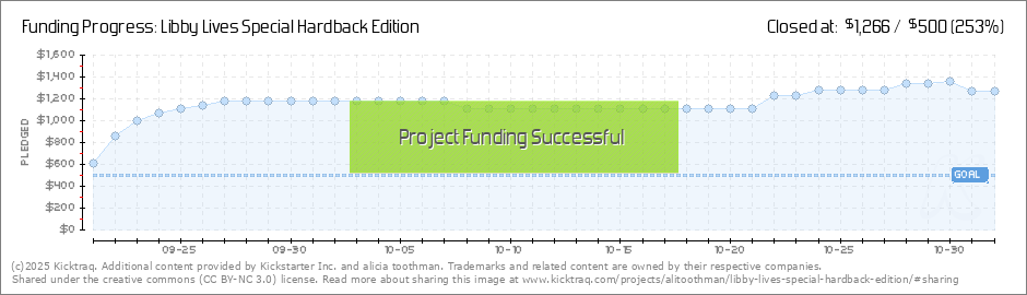 We’re so close to the next goal of $1,500 with 2 days left! When we reach the goal, all backers will receive an ebook of chapter 1 of Libby’s Wrath, the sequel to Libby Lives! I have a post pinned to the top of my profile on Facebook and would... (Read More)