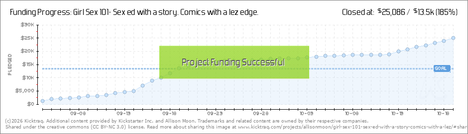 Today was a big day for Girl Sex 101! Thanks to a boost from BoingBoing.org, we crossed the $10,000 threshold! That means we're 75% funded! Thank you everyone for getting us there so quickly. Meanwhile, I'm thrilled to announce we've added another... (Read More)