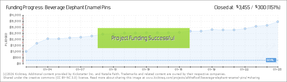 Adorable elephant pins (and stickers!) inspired by beverages! Free pins and stickers with select tiers! Cheers to that!