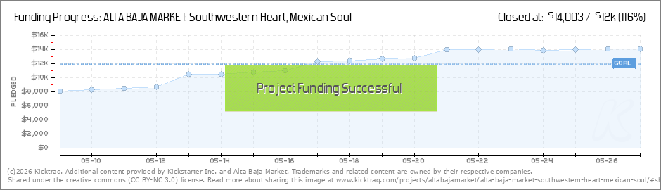 KICKSTARTER UPDATE: Today's a great day for Alta Baja Market and our Kickstarter campaign! We're just 1 donation away from reaching 100 total donations. We thank you so much for your support!! We were also recognized this morning by Kickstarter as... (Read More)