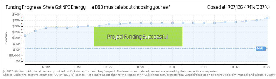 We are $200 from being 300% funded! Which means we are sooooo close to unlocking exclusive full clips of She’s Got NPC Energy! You can see tiny previews here and here. I have been waiting so patiently to share some of these songs that have been in... (Read More)