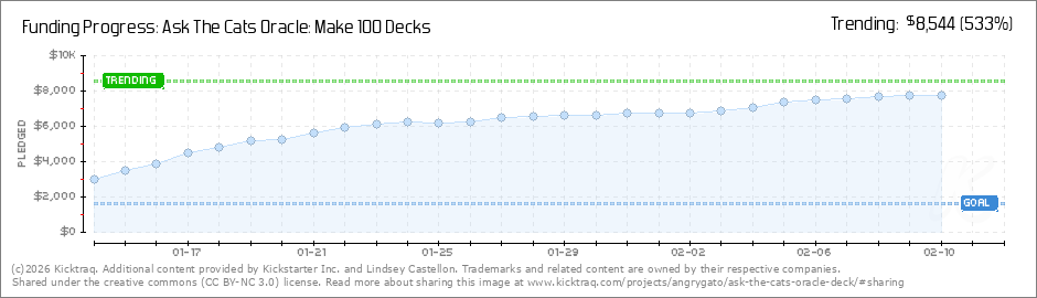 Help your backers reach your daily goals and help others see how you're doing. It's easy, with Kicktraq Mini.Here are a few quick snippits of code you can use to embed your personalized widget on your website, in your blog, and even on your favorite forum.