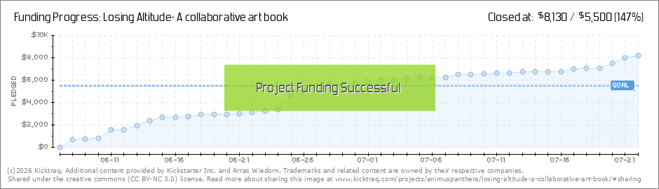 As of the 28th, Losing Altitude is over 100% funded! I've spent the last couple days figuring out some stretch goals with artist Cari Corene, and I'm pleased to announce them! If we can raise more than $6000, all backers who have pledged $20 or more... (Read More)