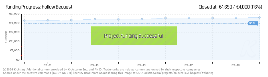Hi everyone! We are in the final 4 hours of the Hollow Bequest Kickstarter campaign.When we launched, we did not expect to fund in 25 minutes, we did not expect the messages of support, and we certainly did not expect to be here. Closing in with a... (Read More)