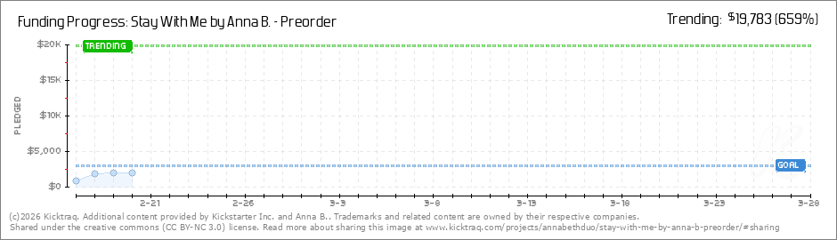 Help your backers reach your daily goals and help others see how you're doing. It's easy, with Kicktraq Mini.Here are a few quick snippits of code you can use to embed your personalized widget on your website, in your blog, and even on your favorite forum.